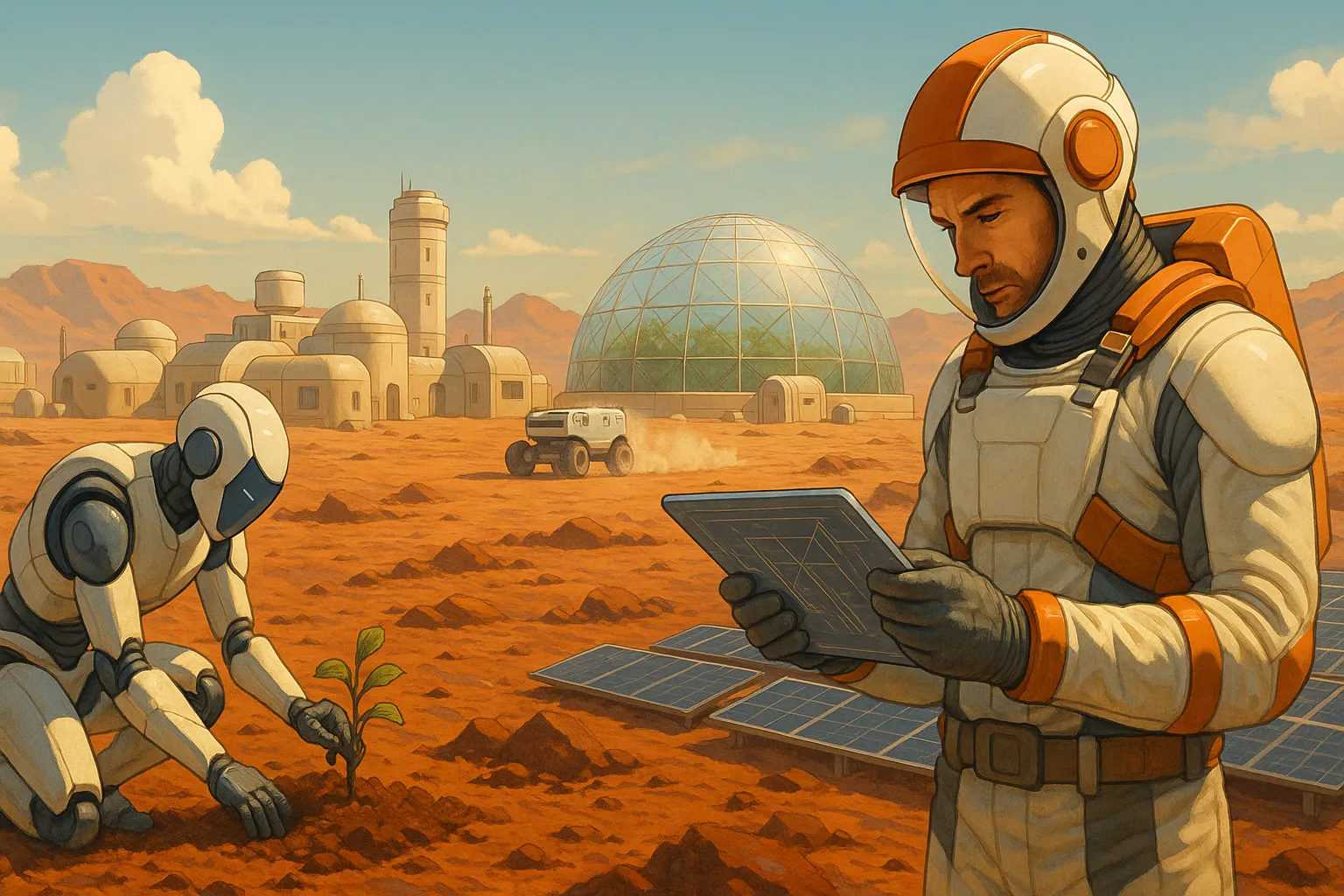 Марс — это шаг за пределы привычного. Это мир, который требует инженерии, дисциплины, коллективности и мечты. И однажды на красной пыли появятся не просто стации и купола, а города, дороги, сады и реки — созданные человеком, чтобы жить там, где природа не предусмотрела жизнь.