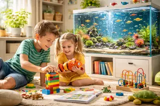 Ігри біля акваріума можуть стати чудовим способом навчання, розвитку уваги, мови, рахунку, спостережливості та емпатії. Але є один принцип, без якого всі найкрасивіші ідеї втрачають сенс: гра має бути безпечною для дитини і безпечною для мешканців акваріума. Без стукоту по склу, без «дотиків до рибки», без експериментів із кормом, без занурення рук у воду, без ризиків для техніки.