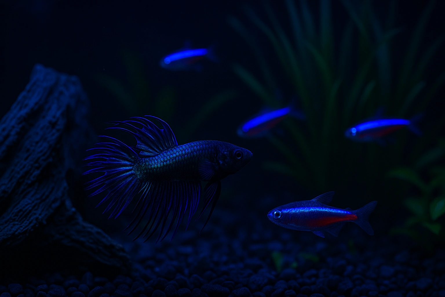 Хорошая стратегия — использовать «ночной» режим освещения, который вы и так применяете для аквариума: лёгкую лунную подсветку или минимальный свет, к которому рыбы привыкли. Тогда вы лишь ловите то, что уже есть, а не провоцируете рыб на паническое бегство.