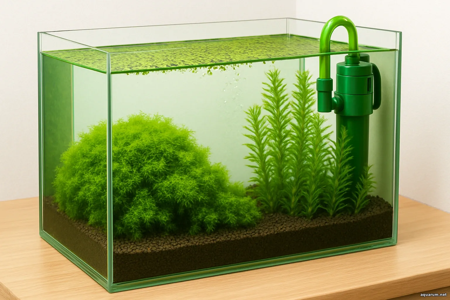 В аквариумах с малым количеством рыб или с креветками можно обойтись без механического фильтра. Мох, ряска и элодея берут на себя большую часть очистки воды, обеспечивая прозрачность и баланс. Главное — не перенаселять аквариум и следить за состоянием растений.